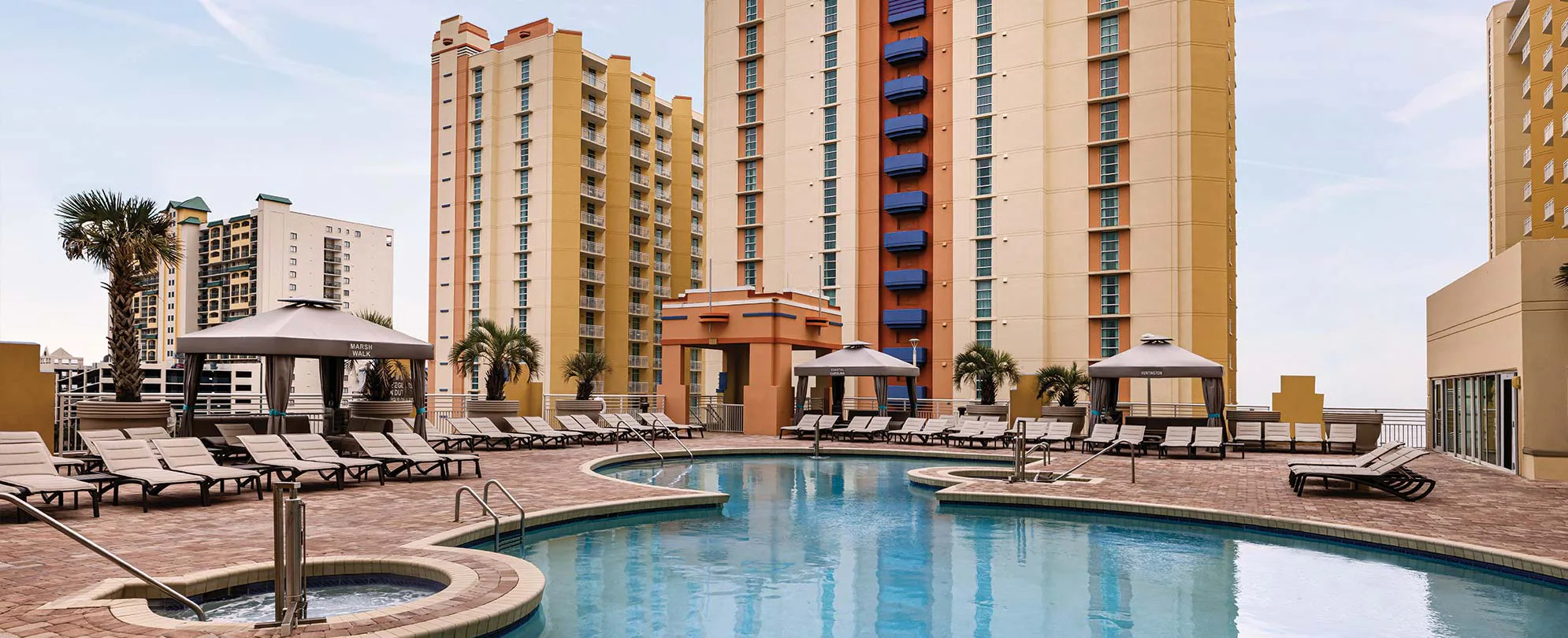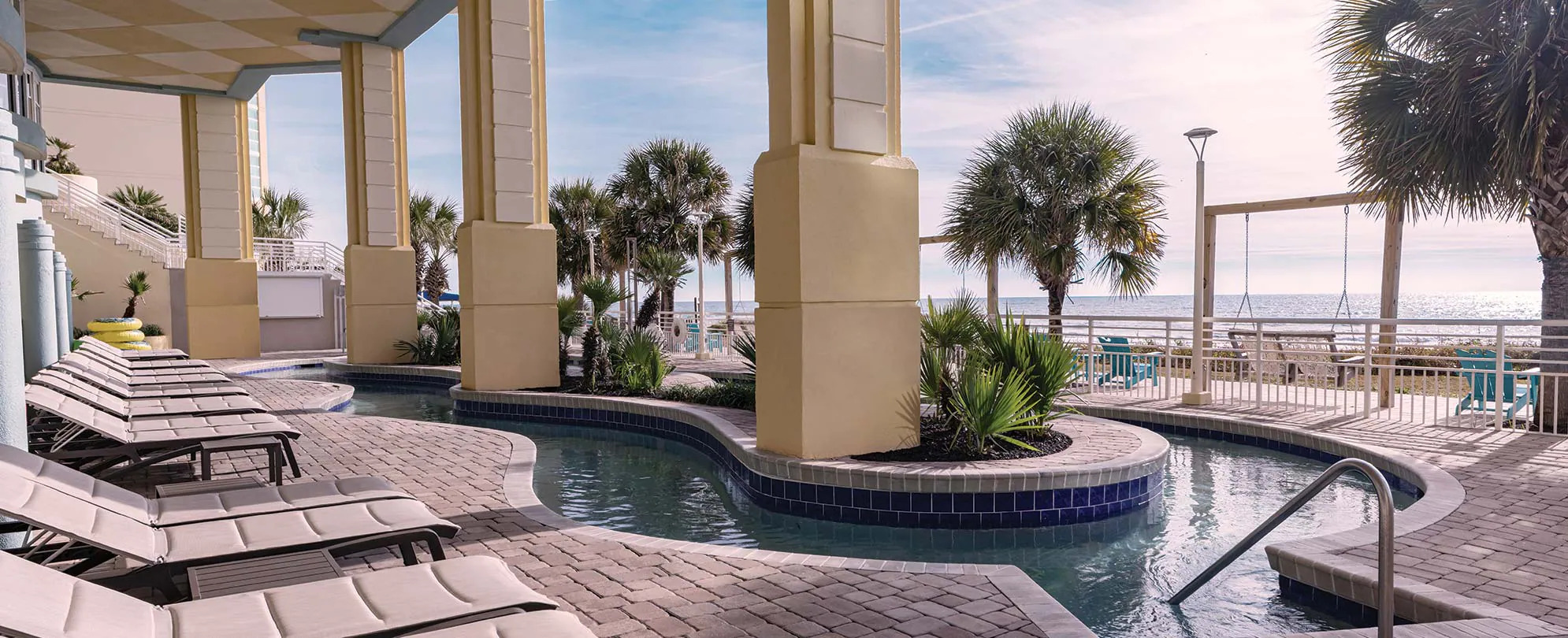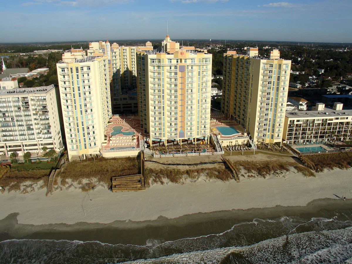 This award-winning resort has a little something for everyone. Literally steps from the beach, there's plenty of fun on-site. Relax in one of the two indoor or three outdoor pools — including a lazy river and eight hot tubs. Take a break from the sun in the air-conditioned game room or dine at Sea Breeze Café & Bar. And when you're ready, North Myrtle Beach is waiting for you to explore.