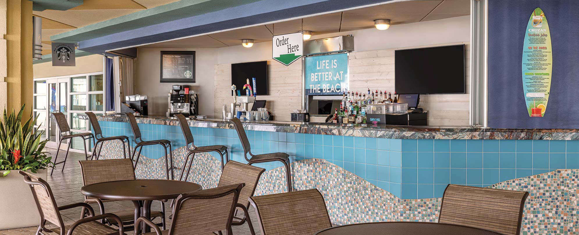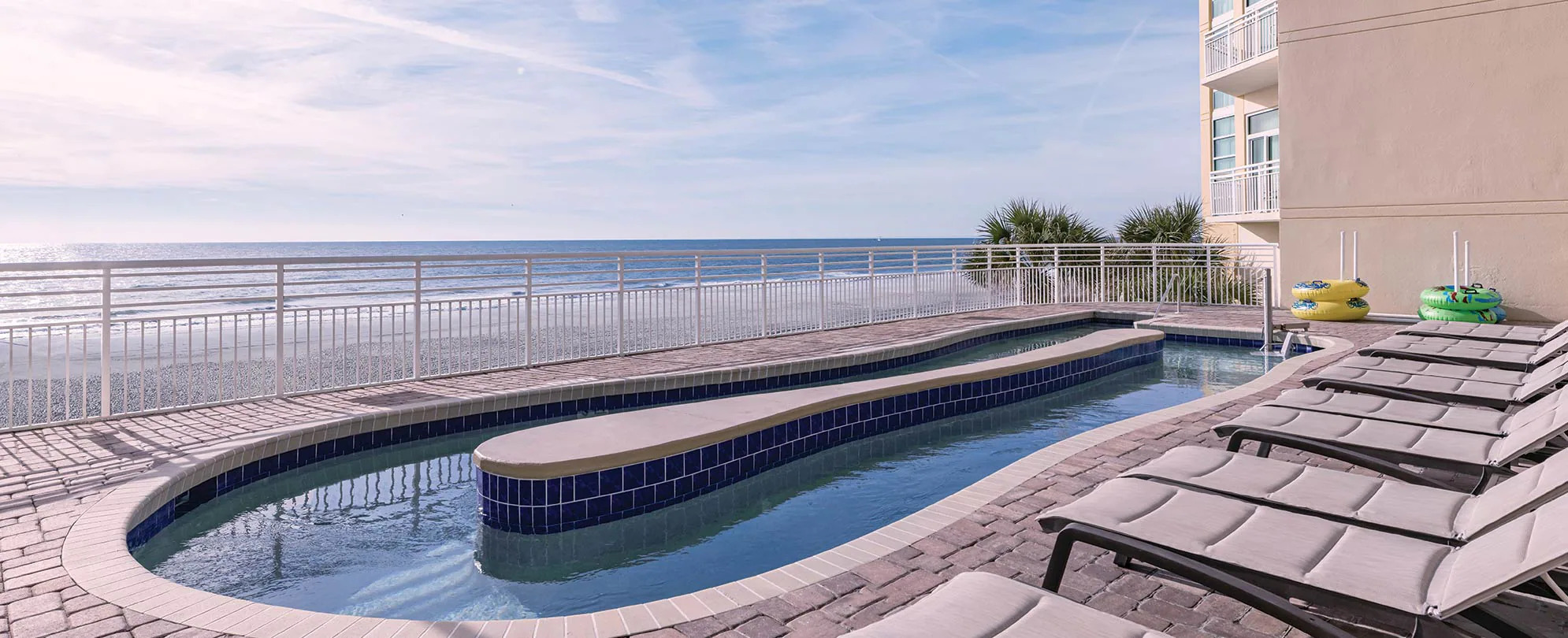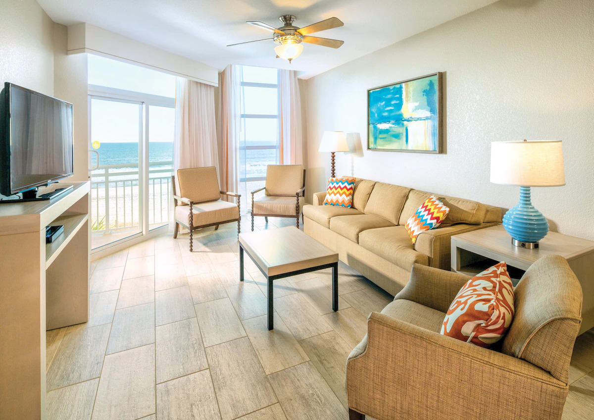 This award-winning resort has a little something for everyone. Literally steps from the beach, there's plenty of fun on-site. Relax in one of the two indoor or three outdoor pools — including a lazy river and eight hot tubs. Take a break from the sun in the air-conditioned game room or dine at Sea Breeze Café & Bar. And when you're ready, North Myrtle Beach is waiting for you to explore.