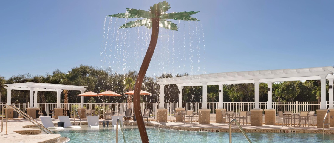 Unwind in luxury: outdoor pool, fitness center, and unique water park for endless family fun.