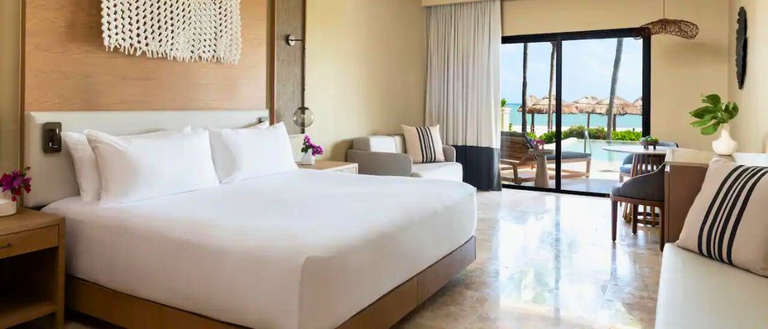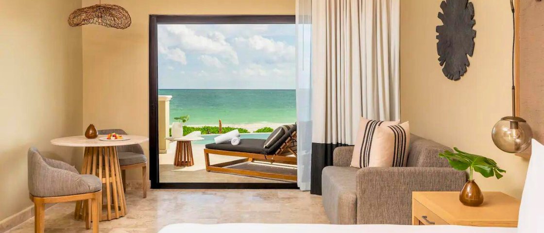 Experience the pinnacle of luxury at Zilara Riviera Maya Adult Only All-Inclusive Resort, an adults-only all-inclusive retreat. Nestled in the secluded Riviera Maya, this newly renovated resort offers a blend of modern elegance and romantic charm. With 291 lavish suites, each boasting impeccable comfort, guests are treated to a serene beachfront location, perfect for couples seeking a peaceful getaway. The resort's architecture, reminiscent of a modern hacienda, complements the stunning natural beauty of the white sand beaches.
